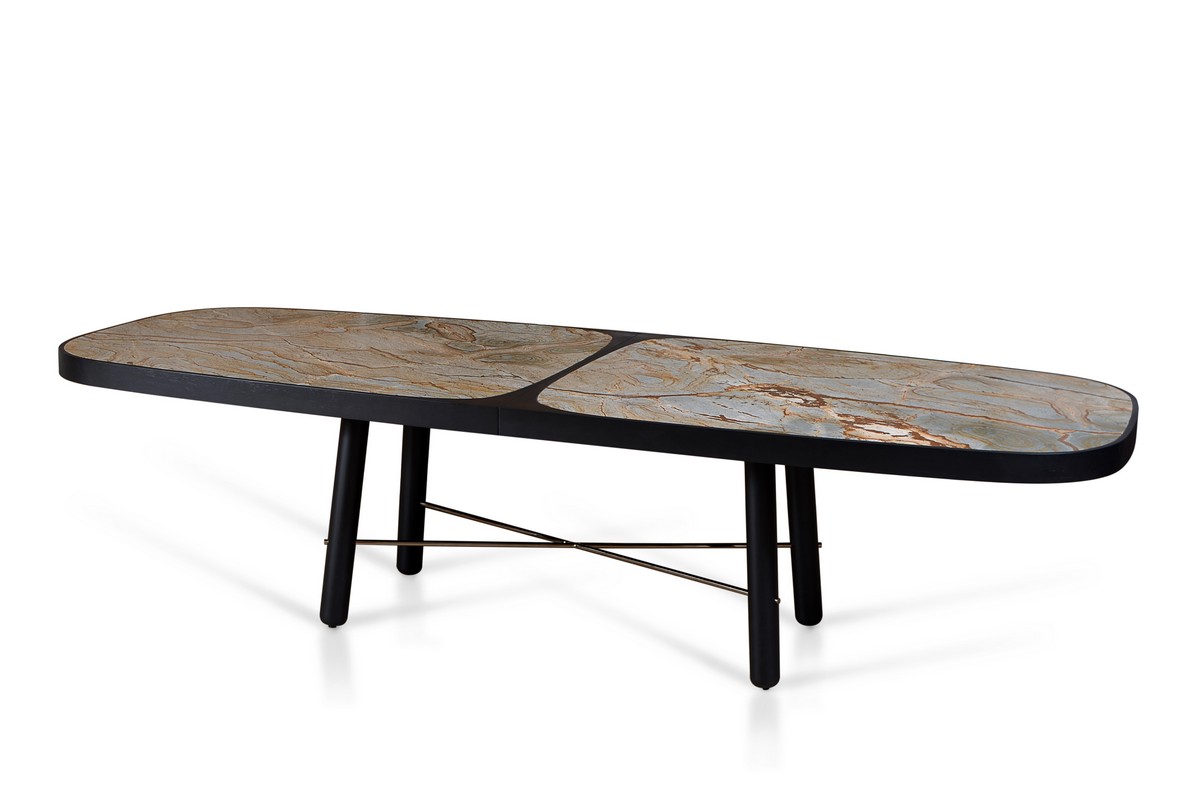Neste projeto de mesa de jantar a busca por grandes dimensões foi o obtivo principal do projeto. Para sua viabilização, o projeto foi pensado para ser composto por duas partes idênticas. Com isso, as peças de pedra do tampo ganham tamanhos manuseáveis e o conjunto todo adquire dimensões mais adequadas para um transporte e logística eficientes. Por causa dessas características a mesa foi batizada de Twins, que significa gêmeos em Inglês.